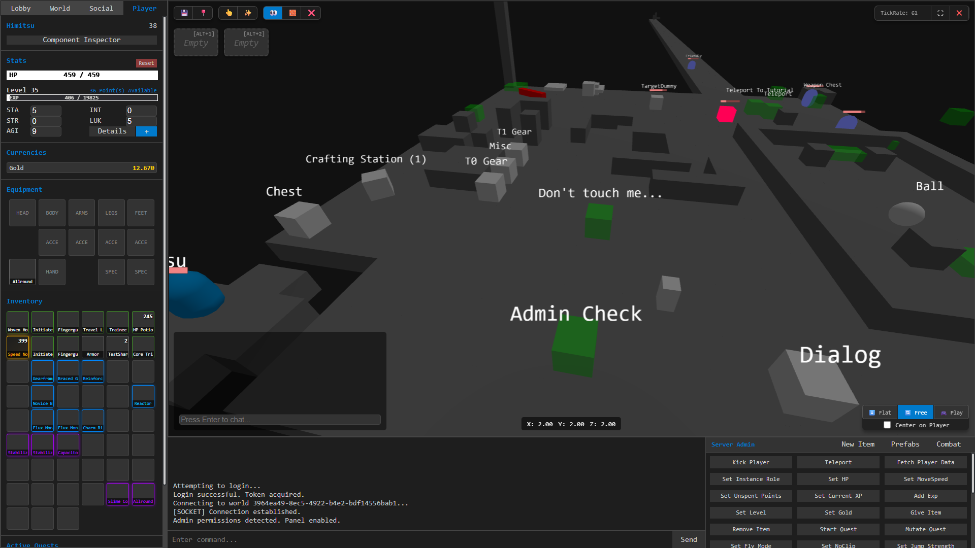 The PO Editor is the official web-based client and debugging tool for Project-Override. It is NOT a visual representation of the game world as a player sees it, but a direct, real-time visualization of the server's state and physics simulation. This server-centric view allows for unparalleled power in world design, live debugging, and system management.